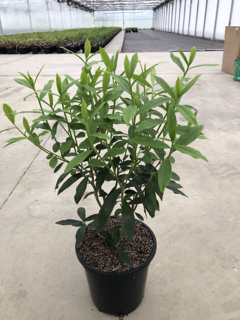 Daphné au port érigé, à la floraison abondante et très parfumée.